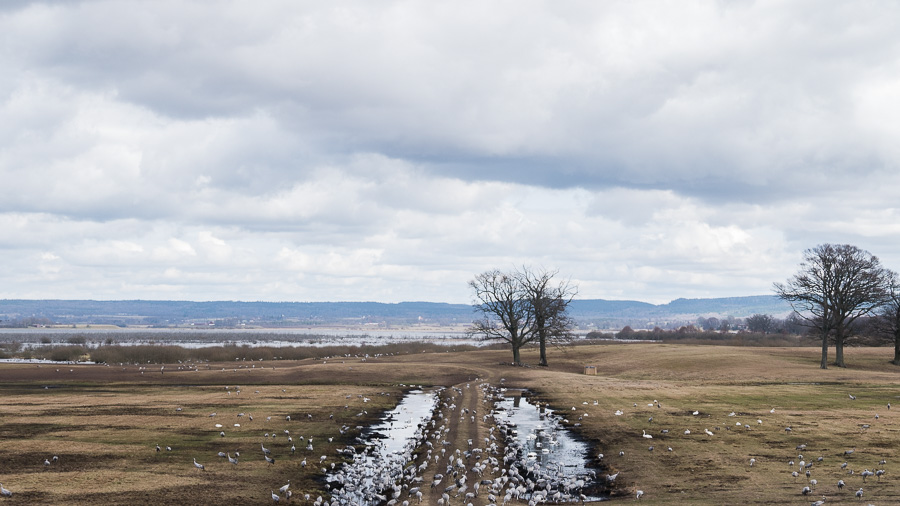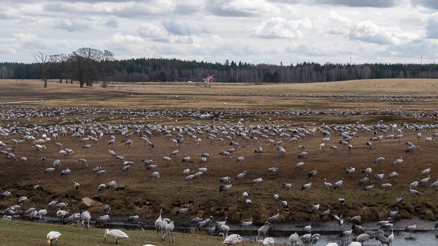 Vid Hornborgarsjön finns många fåglar. Men det här med dansande tranor vet jag inte riktigt om det stämmer. De står mest och hänger, småbråkar lite och petar i marken efter mat. Får de lite feeling flyger ett mindre gäng iväg en stund. Det vill säga sådär som fåglar är mest...